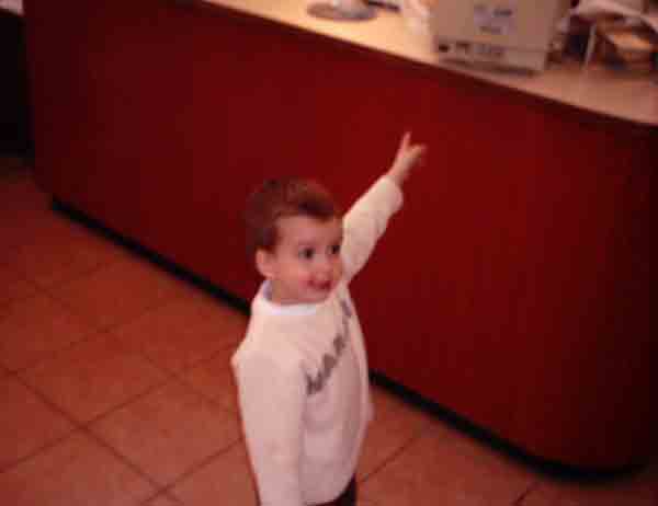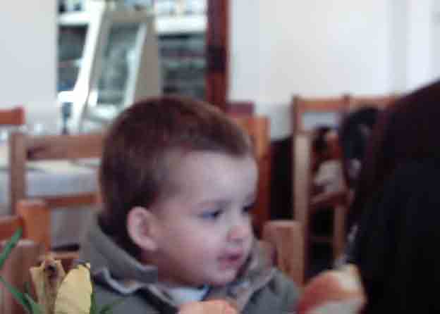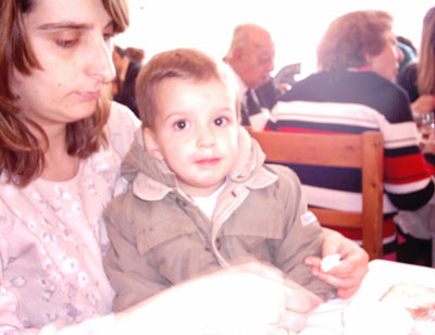 My son Emmanuel, Taverna "Leonidas", Parnitha mountain, Greece. January 2004