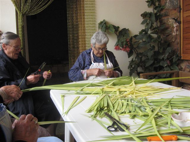 σταυρούς με τα ψαθιά (βάγια) τα οποία μοιράζει μαζί με τα κλωνάρια της ελιάς ο